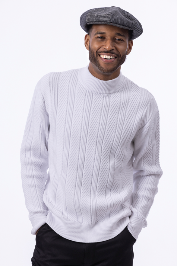 Mens sweater sw-102 white cable knit dressy mens sweater is made with premium knit fabric. It is soft, warm, and breathable. Montique mens sweater is an upscale crew neck design is exceptional classy. In addition, you can pair Montique sw-102 mens sweater with jeans, slacks, or casual trousers.