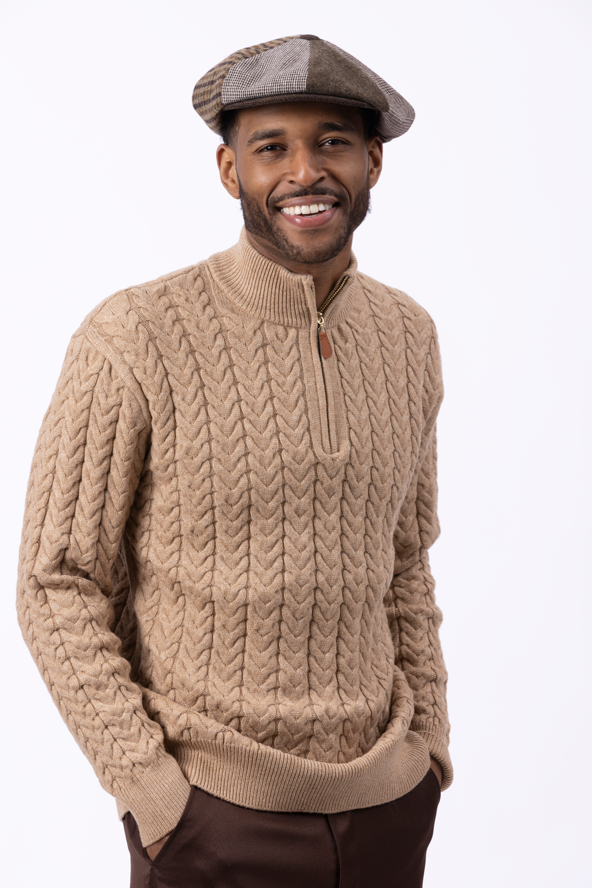 Design: Chevron cable-knit pattern – Quarter-Zip Sweater